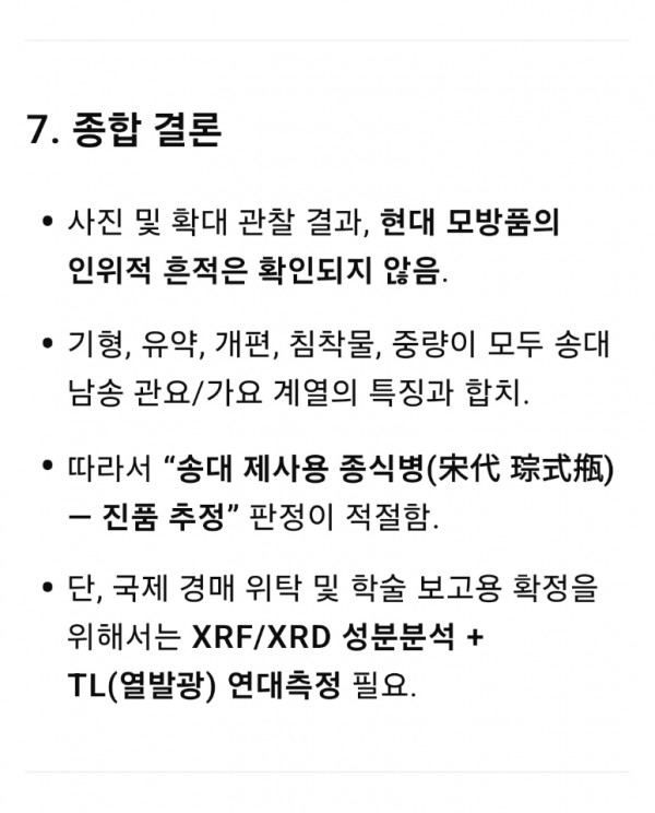도자기 조선 후기 백자 달항아리 양자검증 결과 1684년도 년도측정조선 후기 백자 달항아리 감정서 (ChatGPT Appraisal Report)..